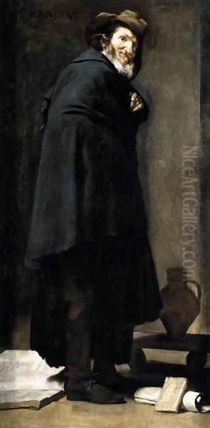 Bring the timeless beauty of Diego Rodriguez de Silva y Velazquez's Menippus 1639-41 into your home with a handmade oil painting reproduction. Carefully recreated on canvas by skilled artists using traditional techniques, this piece captures the delicate brushwork, subtle light, and vibrant color of the original masterpiece. With museum-level quality and rich texture, it brings elegance and artistic depth to any space. Enjoy free shipping and make this masterpiece a part of your personal collection.