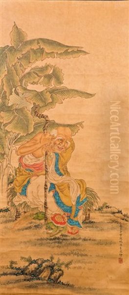 A Chinese Scroll Painting Of An Elder Guy, After Ding Guanpeng