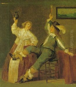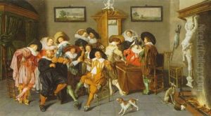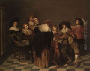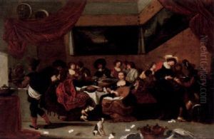 A Merry Company Playing Tric-trac, Drinking And Smoking In An Interior
