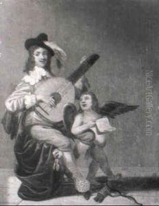 Ein Mandolinenspieler Begleitet Amor Bei Einem Liebeslied