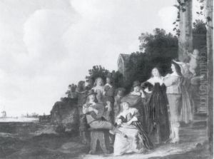 Landscape With A Couple Making Music And A Hunting Party Beyond