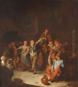 Wirtshausinterieur Mit Vier Musizierenden Und Trinkenden Mannern