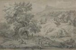 Flusslandschaft Mithofischen Staffagefiguren