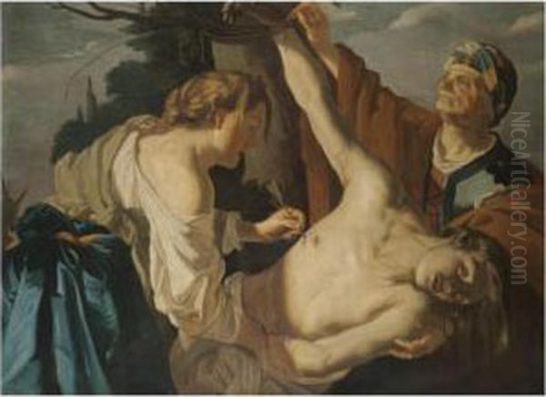 Bring the timeless beauty of Dirck Van Baburen's Saint Irene Tending To Saint Sebastian into your home with a handmade oil painting reproduction. Carefully recreated on canvas by skilled artists using traditional techniques, this piece captures the delicate brushwork, subtle light, and vibrant color of the original masterpiece. With museum-level quality and rich texture, it brings elegance and artistic depth to any space. Enjoy free shipping and make this masterpiece a part of your personal collection.