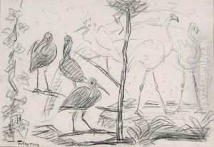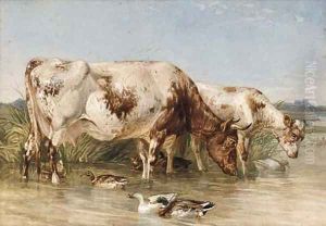Three Ducks By A Lake In An Extensive Landscape