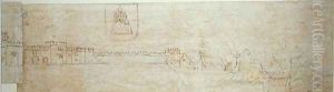 The Courtyard And Gardens Of A Palace With Figures Promenading...