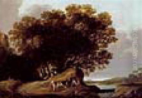 Bewaldete Flusslandschaft Mit Diana Und Einem Mit Einer Nymphe Tanzenden Satyr