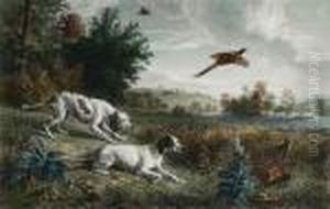 En Jagthund Vogter Over Det Skudte Fuglevildt I Et Landskab
