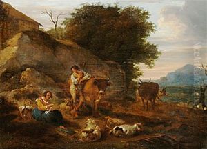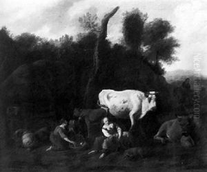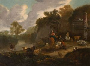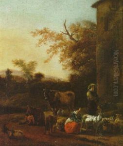 Peasants In A Landscape Tending Their Animals