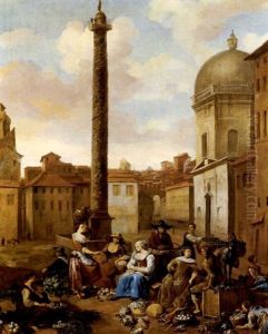 Cattle Grazing By A Fountain, A Classical Ruin Beyond