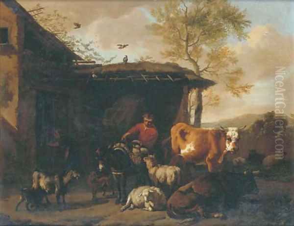 Bring the timeless beauty of Dirk van Bergen's A rustic by a barn with his donkey and other animals into your home with a handmade oil painting reproduction. Carefully recreated on canvas by skilled artists using traditional techniques, this piece captures the delicate brushwork, subtle light, and vibrant color of the original masterpiece. With museum-level quality and rich texture, it brings elegance and artistic depth to any space. Enjoy free shipping and make this masterpiece a part of your personal collection.