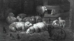 Sheep And Chickens In Stable