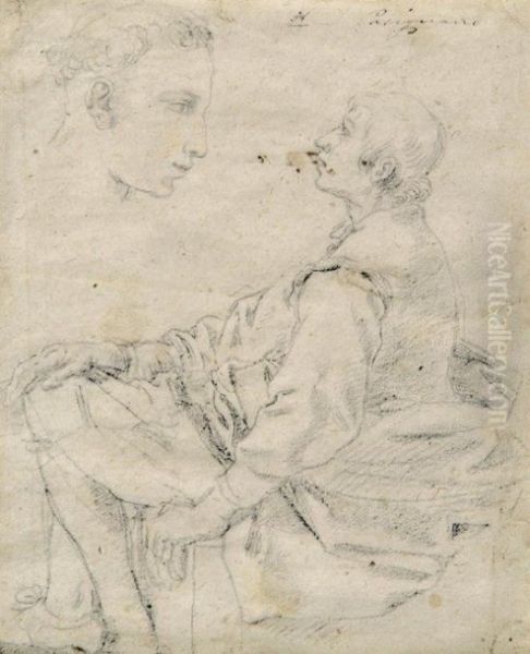 Etude D'un Homme Assis Et D'une Tete De Profil