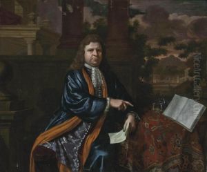 Portrait Of A Young Man, Three Quarter Length Seated, Playing A Cittern, A Landscape Beyond