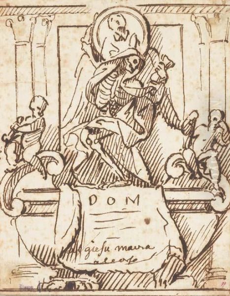 Study For A Wall Tomb With The Figure Of Death Supporting Aportrait Roundel And Two Mourning Putti