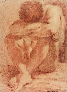 A Male Nude Seated, His Knees Drawn Up And His Head Resting On His Crossed Arms