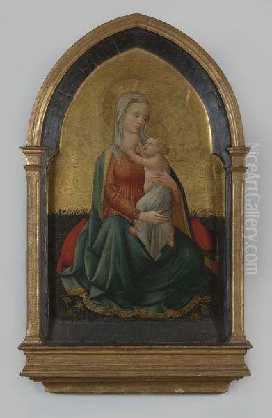 Paneelschildering "Madonna met kind" op hout door Domenico di Michelino, circa 1450, Florence