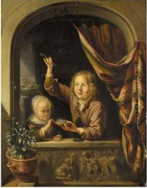 Bring the timeless beauty of Dominicus van Tol's Two Children Blowing Bubbles At A Window into your home with a handmade oil painting reproduction. Carefully recreated on canvas by skilled artists using traditional techniques, this piece captures the delicate brushwork, subtle light, and vibrant color of the original masterpiece. With museum-level quality and rich texture, it brings elegance and artistic depth to any space. Enjoy free shipping and make this masterpiece a part of your personal collection.