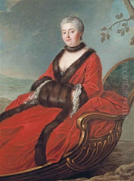 Portrait Of A Lady, Traditionally Identified As Marie Leczinska, Queen Of France (1703-1768), Three-quarter-length, Seated On A Sleigh