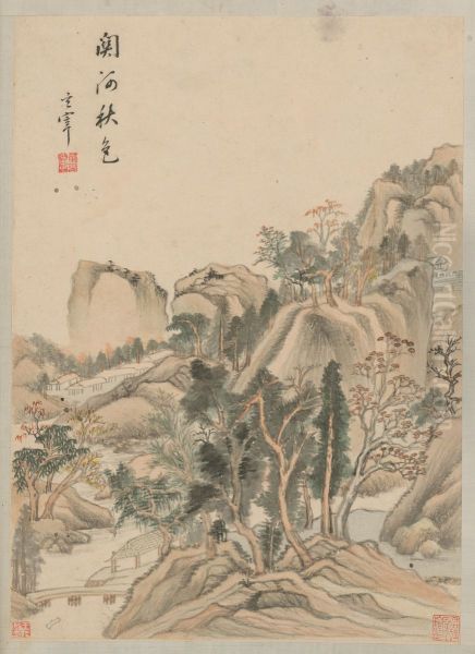<<dong qi chang shan shui ce>> Oil Painting by Dong Qichang