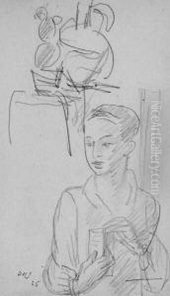 Skizze - Knabe Und Stilleben. Bleistiftzeichnung. 19 X 11,5 Cm. 1925. Monogrammiert Und Datiert.