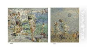 Testing The Water (+ Girl With A Green Bathing Suit, Oil On Paper Laid On Board; 2 Works)