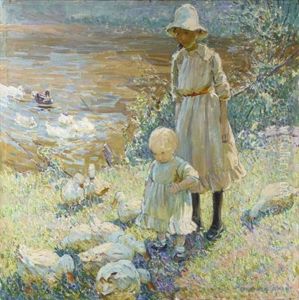 Untitled - Two Young Girls Picking Flowers