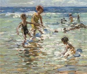 Children Paddling (+ Sketch Of 3 Children, Verso)