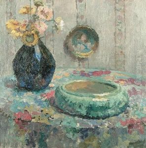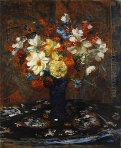 Still Life Of Flowers In A Blue Vase Oil Painting by Dorothea Sharp