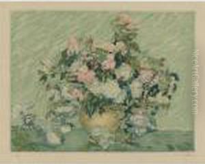 Still Life Of Flowers In A Blue Vase
