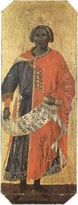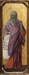Maesta, Altarretabel des Sieneser Doms, Vorderseite, Predella mit Szenen aus der Kindheit Jesu und Propheten, Szene: Prophet Hosea