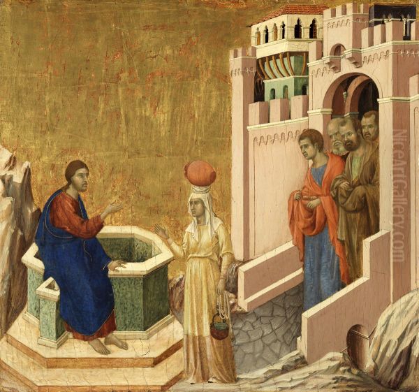 Bring the timeless beauty of Duccio Di Buoninsegna's Christ and the Samaritan Woman into your home with a handmade oil painting reproduction. Carefully recreated on canvas by skilled artists using traditional techniques, this piece captures the delicate brushwork, subtle light, and vibrant color of the original masterpiece. With museum-level quality and rich texture, it brings elegance and artistic depth to any space. Enjoy free shipping and make this masterpiece a part of your personal collection.