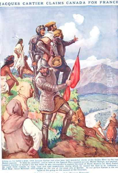 Jacques Cartier claims Canada for France, illustration from Newnes Pictorial Book of Knowledge