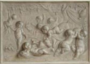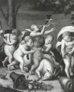An infant pouring water from a dish, flanked by a horse, a rabbit and two goats, two figures with a cow in the background 2