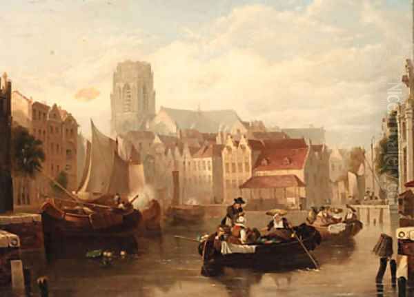 Figures in barges on a Dutch canal