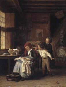 Mother With Her Children In An Interior