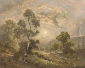 A Hilside Landscape With Figures And Cattle On A Path, A Farmhouse In The Distance
