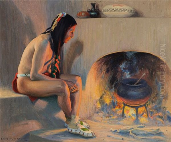 Bring the timeless beauty of Eanger Irving Couse's A Pueblo Fireplace into your home with a handmade oil painting reproduction. Carefully recreated on canvas by skilled artists using traditional techniques, this piece captures the delicate brushwork, subtle light, and vibrant color of the original masterpiece. With museum-level quality and rich texture, it brings elegance and artistic depth to any space. Enjoy free shipping and make this masterpiece a part of your personal collection.