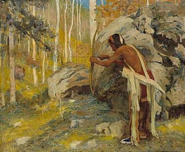 Bring the timeless beauty of Eanger Irving Couse's Hunting the turkey in the Aspens into your home with a handmade oil painting reproduction. Carefully recreated on canvas by skilled artists using traditional techniques, this piece captures the delicate brushwork, subtle light, and vibrant color of the original masterpiece. With museum-level quality and rich texture, it brings elegance and artistic depth to any space. Enjoy free shipping and make this masterpiece a part of your personal collection.
