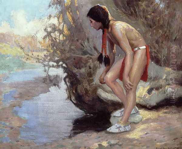 Bring the timeless beauty of Eanger Irving Couse's In Ambush, c.1915-16 into your home with a handmade oil painting reproduction. Carefully recreated on canvas by skilled artists using traditional techniques, this piece captures the delicate brushwork, subtle light, and vibrant color of the original masterpiece. With museum-level quality and rich texture, it brings elegance and artistic depth to any space. Enjoy free shipping and make this masterpiece a part of your personal collection.