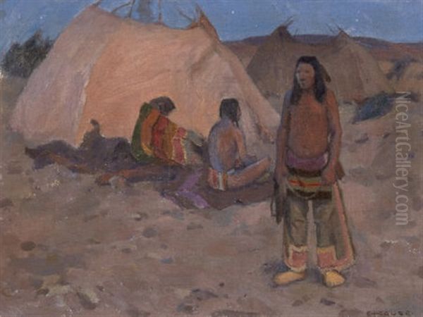 Bring the timeless beauty of Eanger Irving Couse's The Encampment into your home with a handmade oil painting reproduction. Carefully recreated on canvas by skilled artists using traditional techniques, this piece captures the delicate brushwork, subtle light, and vibrant color of the original masterpiece. With museum-level quality and rich texture, it brings elegance and artistic depth to any space. Enjoy free shipping and make this masterpiece a part of your personal collection.