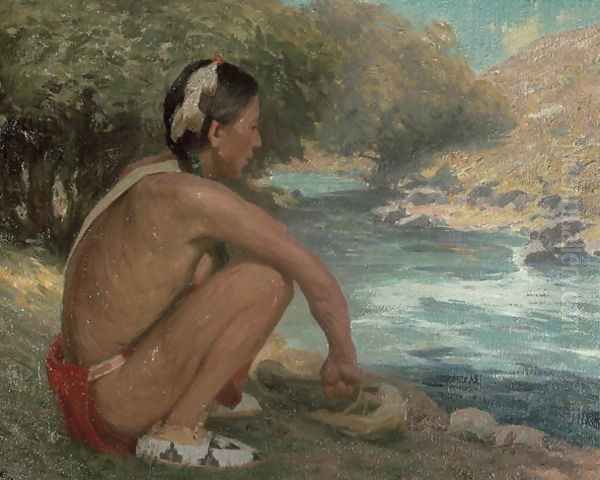 Bring the timeless beauty of Eanger Irving Couse's The Mountain Stream, c.1914 into your home with a handmade oil painting reproduction. Carefully recreated on canvas by skilled artists using traditional techniques, this piece captures the delicate brushwork, subtle light, and vibrant color of the original masterpiece. With museum-level quality and rich texture, it brings elegance and artistic depth to any space. Enjoy free shipping and make this masterpiece a part of your personal collection.
