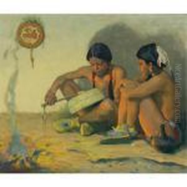 Bring the timeless beauty of Eanger Irving Couse's The Tom Tom Lesson into your home with a handmade oil painting reproduction. Carefully recreated on canvas by skilled artists using traditional techniques, this piece captures the delicate brushwork, subtle light, and vibrant color of the original masterpiece. With museum-level quality and rich texture, it brings elegance and artistic depth to any space. Enjoy free shipping and make this masterpiece a part of your personal collection.