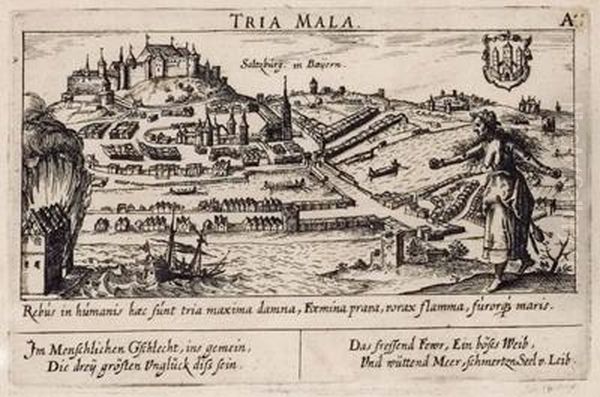 Ansicht Salzburgs Vom Kapuzinerberg Radierung