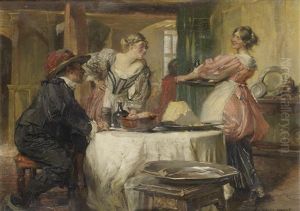 Figures Preparing For An Extravagant Feast, With Game, Including Swan, Upon The Table