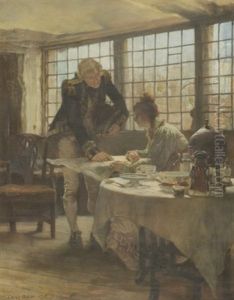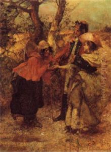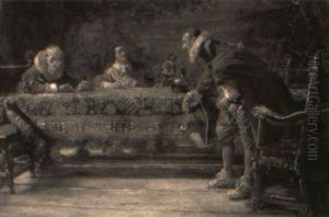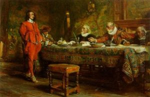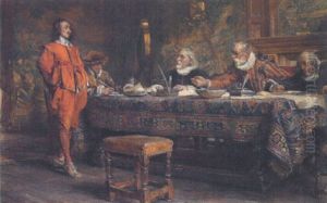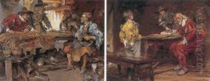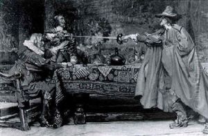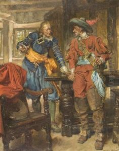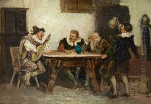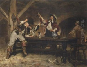 Genreszene. Drei Musketiere Im Gesprach Bei Tisch