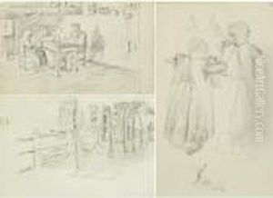 Etude De Chevaux Dessin Recto-verso Au Crayon Noir Porte Le Timbre De L'atelier En Bas A Droite