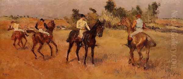 Bring the timeless beauty of Edgar Degas's Four Jockeys into your home with a handmade oil painting reproduction. Carefully recreated on canvas by skilled artists using traditional techniques, this piece captures the delicate brushwork, subtle light, and vibrant color of the original masterpiece. With museum-level quality and rich texture, it brings elegance and artistic depth to any space. Enjoy free shipping and make this masterpiece a part of your personal collection.
