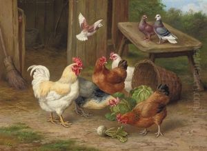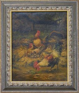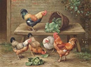 Chickens And A Cabbage (+ Chickens And Chicks In A Barn; Pair)