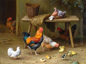 Farmyard Scene With Chickens (+ Chickens, Chicks And Doves In A Farmyard; Pair)